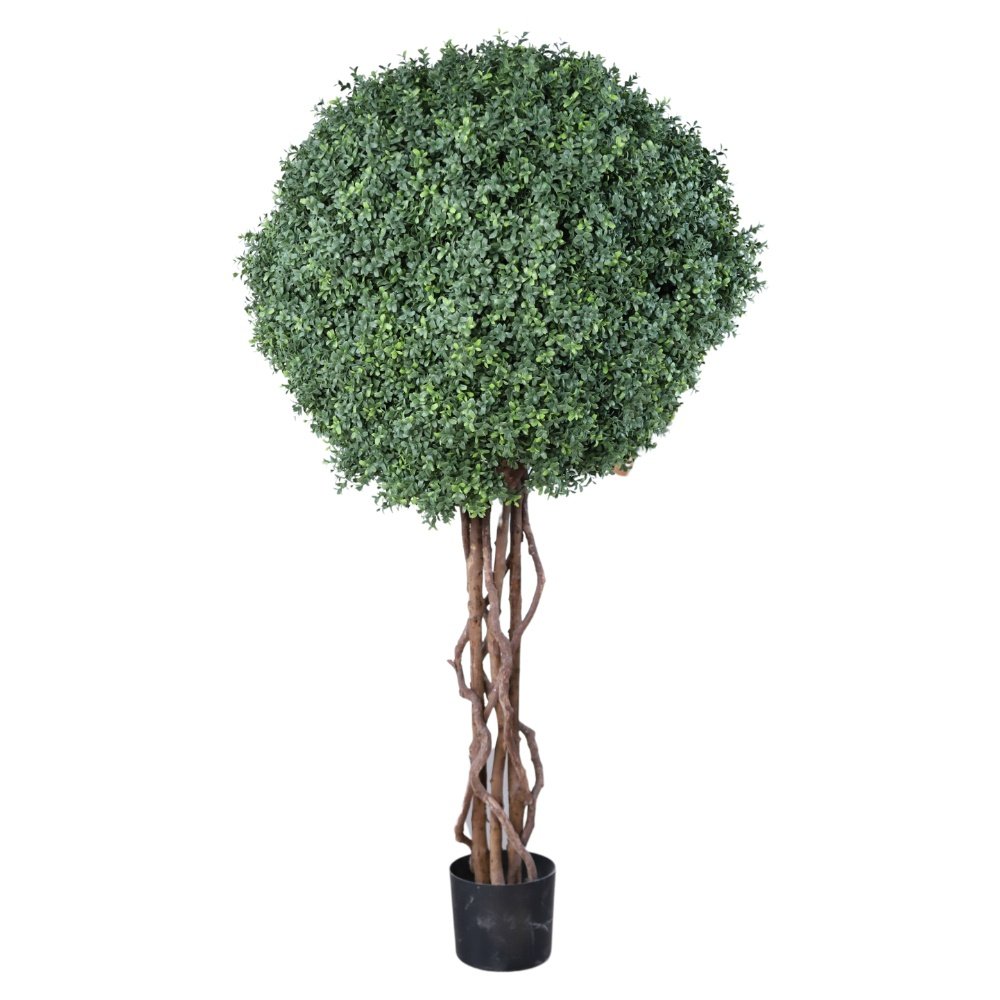 Bring the timeless sophistication of topiary into your space with our Artificial Boxwood Tree—a premium faux tree made for high-end retail displays, hotel lobbies, and sophisticated office environments. Standing 150 cm tall, the tree features a realistic braided trunk supporting a lush, spherical canopy that spans 80 cm in width. It is delivered in a weighted contractor base pot (ready for custom planters) for immediate, hassle-free installation.