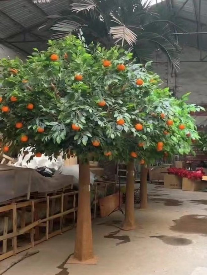 Realistic faux orange trees with lifelike fruit, nearlynatural trunks, and customizable sizes for hotels, malls, and themed projects.