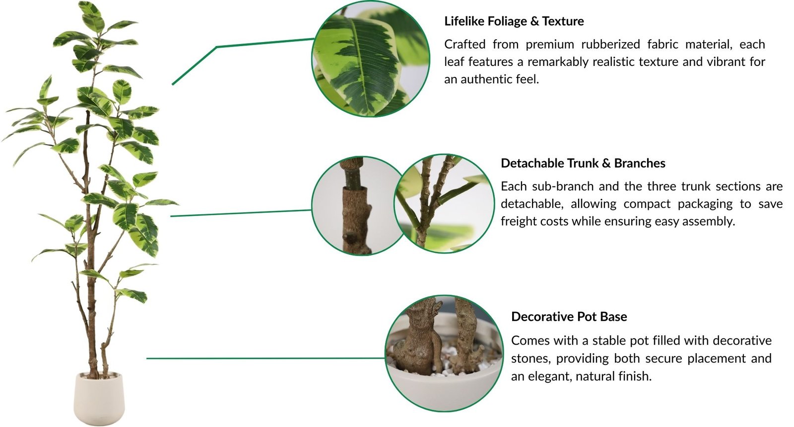 Enhance living rooms, offices, and entryways with lifelike faux potted rubber tree that combine natural elegance with zero maintenance.