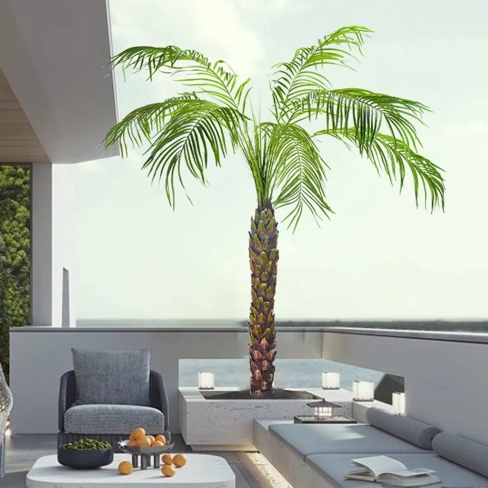 Realistic Trunk Detail: Our palm features a robust, single trunk with the signature diamond-shaped scars and natural texture of a real Phoenix palm, often finished with natural wood (as indicated in the specifications) for superior authenticity.