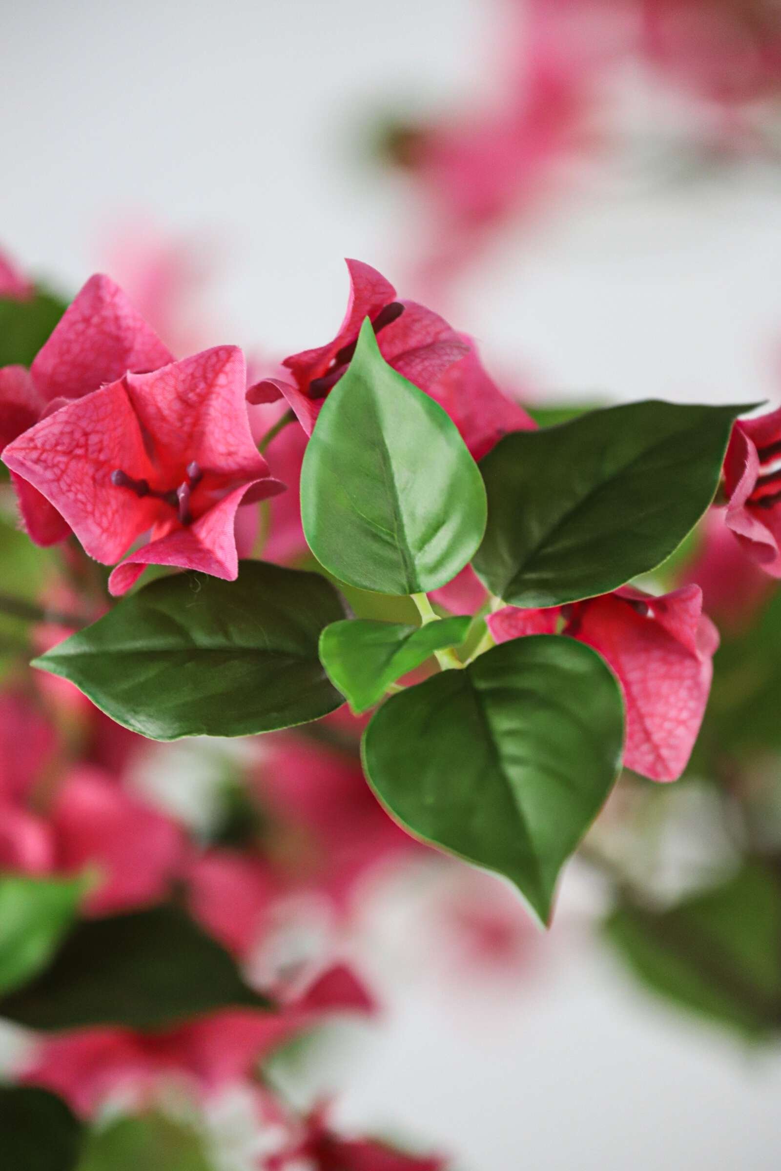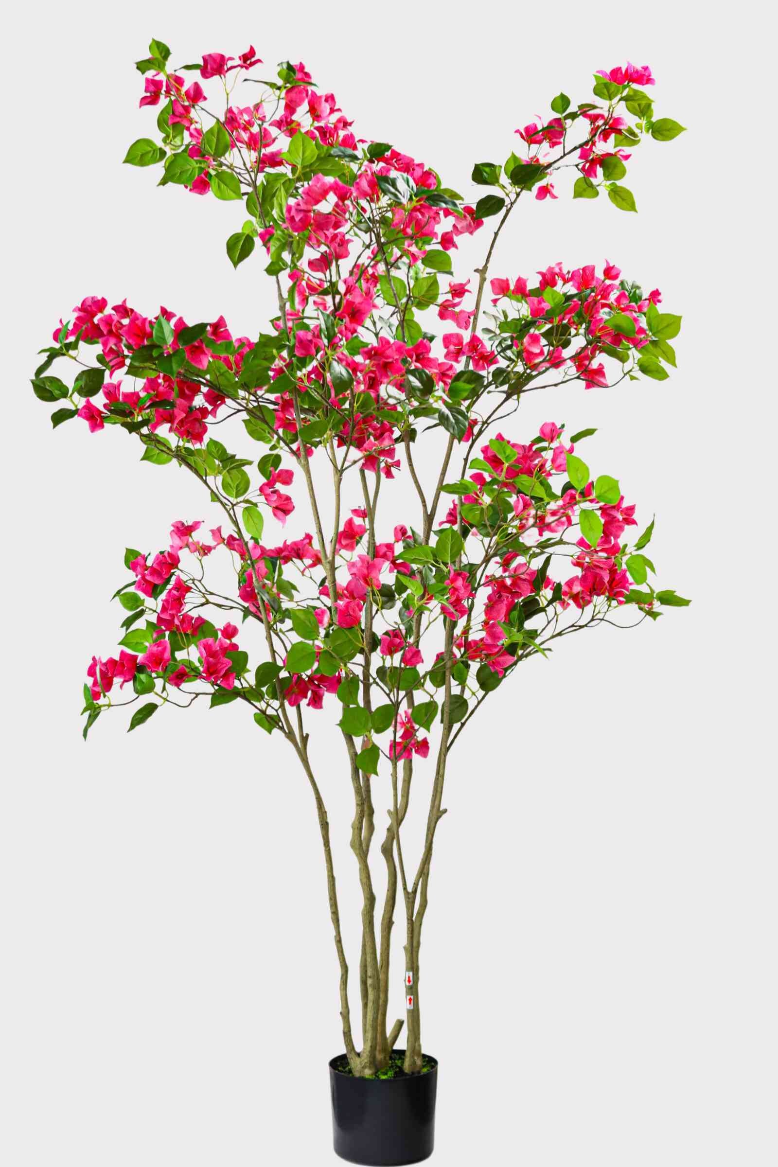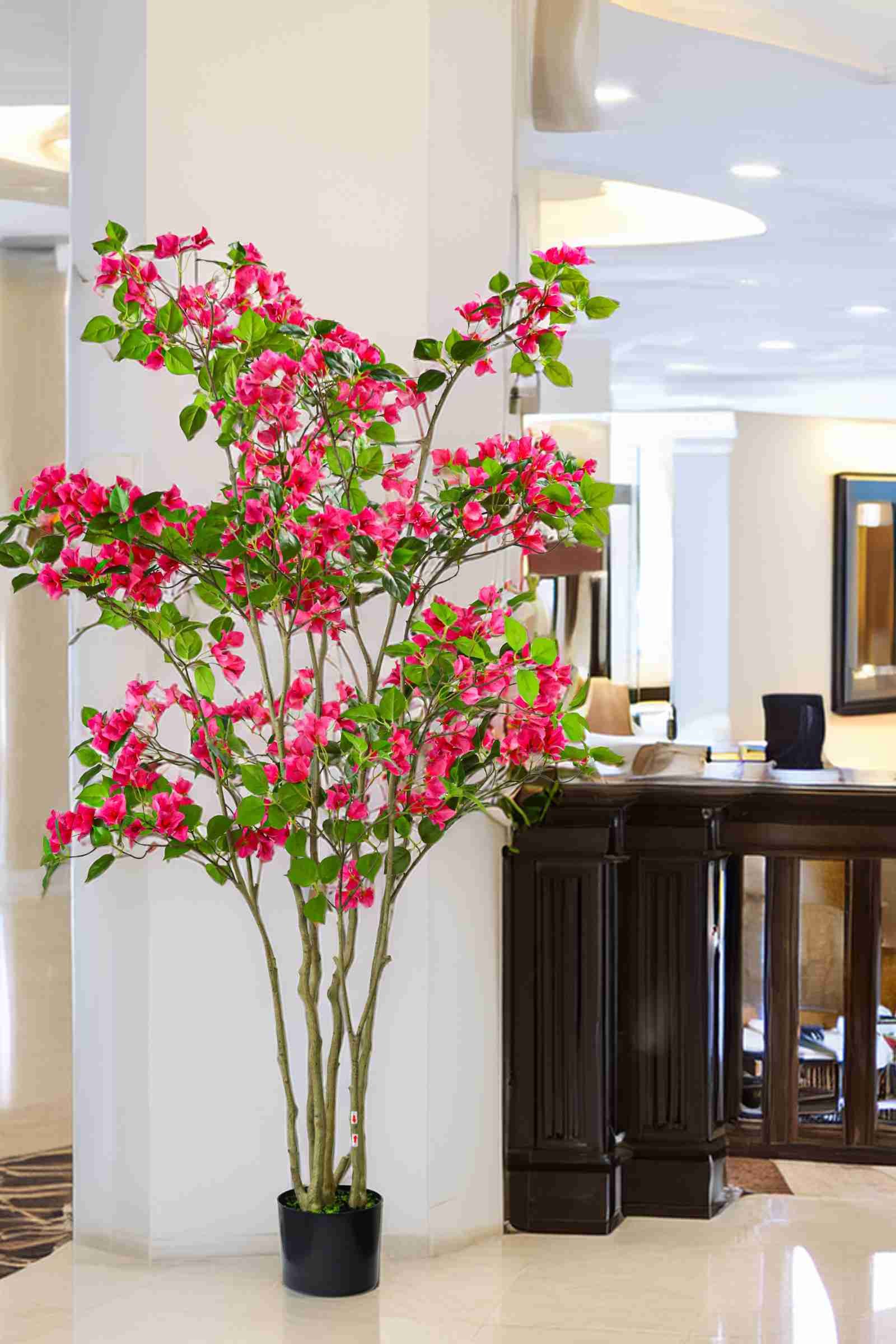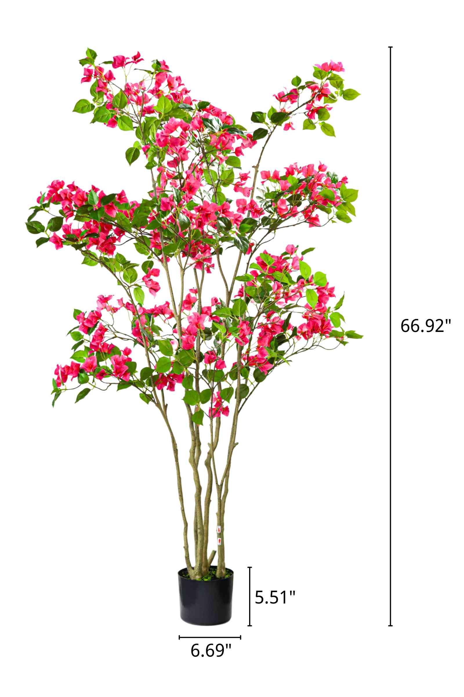 Stunningly beautiful, this 66.92″ tall Bougainvillea tree with pot will look gorgeous displayed in your home or office. Whether displayed in your table, kitchen, or even bathroom, this enchanting piece instantly illuminates any space with vibrant cascading blooms, offering effortless elegance that thrives year-round—zero upkeep required. Crafted with premium silk blooms and reinforced detailing, it stands as a timeless botanical statement, blending hyper-realistic textures with enduring luxury to captivate guests for decades.