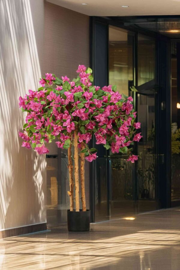 Enhance your space with this stunning potted artificial bougainvillea tree, designed to bring everlasting beauty and vibrant color to any room or outdoor setting. Featuring lush green leaves and lifelike cascading pink blooms, this faux tree captures the charm of real bougainvillea without maintenance. Perfect for home, office, or event décor, it offers a natural aesthetic with a timeless appeal.